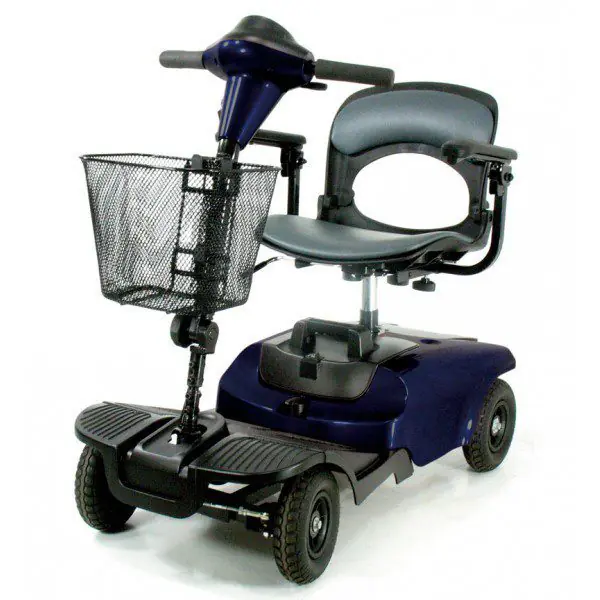 Asiento giratorio Facil desmontaje de la bateria Longitud total: 97cm Anchura total : 42 cm Altura total: 92 cm Distancia libre al suelo: 5.4 cm Autonomía: 10-12 Km (ensayo laboratorio) Velocidad máxima: 6 Km/h Potencia: 270W Baterías: 2 x 12 V – 12Ah Peso máximo soportado: 115 Kg. Color: azul