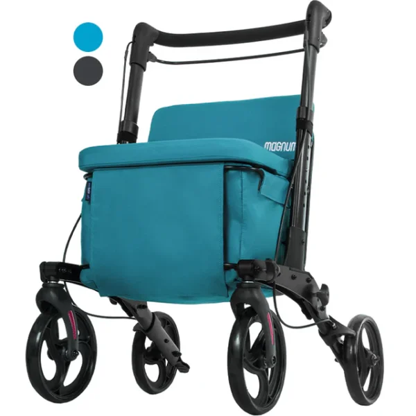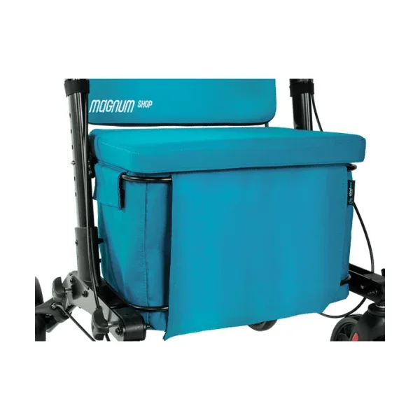 El andador con carro de compra Magnum Shop es un dispositivo de ayuda a la movilidad que integra un andador estable, un carro de la compra con cesta de 24 litros y un asiento abatible, ideal para personas que valoran su independencia en tareas cotidianas como ir al supermercado. Su diseño plegable y regulable en altura lo convierte en una opción versátil y fácil de transportar.