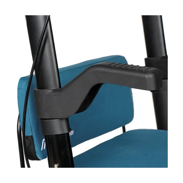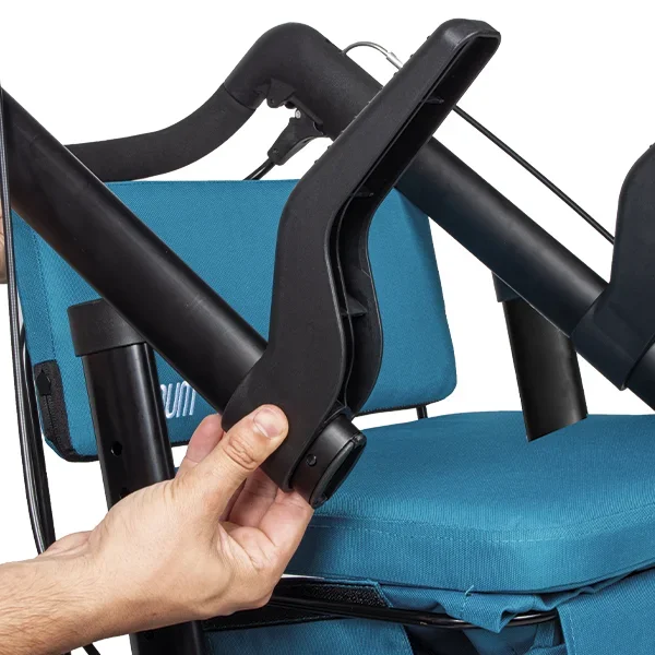 El manillar ergonómico es regulable en altura entre 79 y 91 cm, adaptándose a distintas estaturas. En consecuencia, tanto usuarios de menor altura como personas más altas pueden encontrar una postura cómoda y segura. El asiento abatible mide 40 x 32 cm y cuenta con funda extraíble y lavable, igual que el respaldo de 40 x 17 cm.