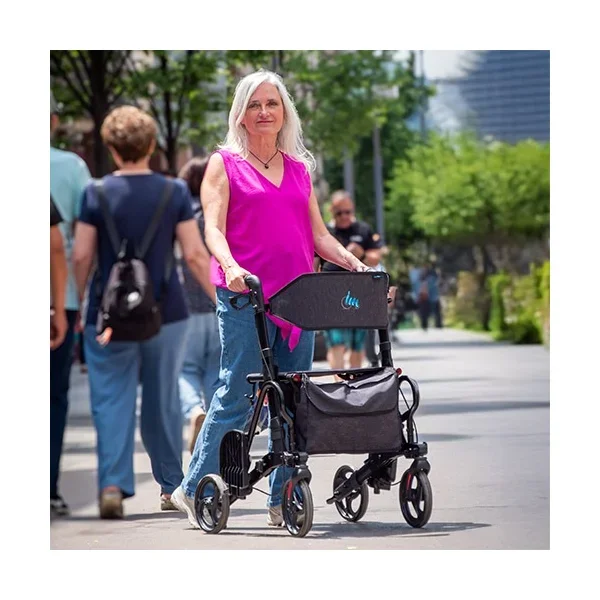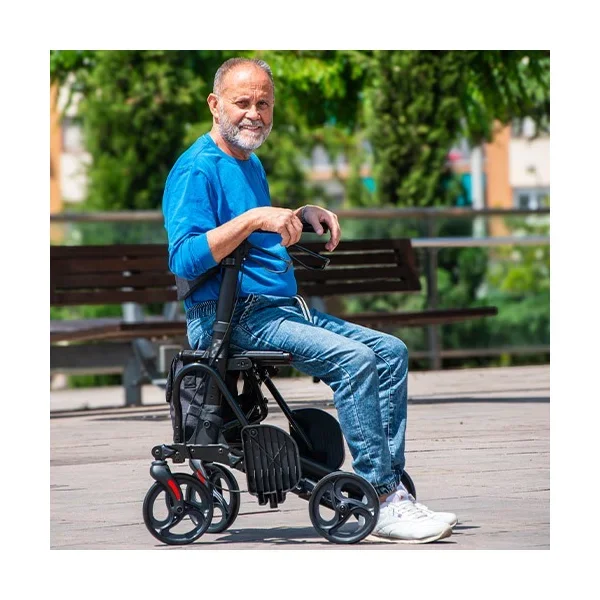Este andador rollator está especialmente indicado para personas mayores con movilidad reducida que necesitan apoyo para caminar en exteriores pero que en determinados momentos —paseos largos, visitas médicas, centros comerciales— requieren ser transportadas en silla. También es adecuado para personas en proceso de rehabilitación postquirúrgica que alternan fases de deambulación asistida con periodos de reposo en silla. Por otro lado, dado que soporta hasta 136 kg, resulta apropiado para usuarios con sobrepeso que no encuentran un rollator con capacidad suficiente en el mercado convencional. Ahora bien, se recomienda consultar con el fisioterapeuta o médico rehabilitador antes de elegir la talla y la altura de manillar adecuadas para cada paciente.Preguntas frecuentes
