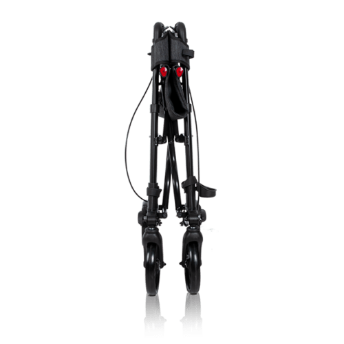 El rollator con asiento Magnum Plus está fabricado íntegramente en aluminio, un material que combina resistencia estructural con un peso contenido de 9,50 kg. Esto lo hace manejable incluso para cuidadores con poca fuerza en las manos. Además, el acabado en negro aporta un aspecto discreto y contemporáneo, alejado del estereotipo clínico de las ayudas técnicas tradicionales.
