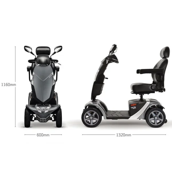 Además de mejorar significativamente tu movilidad, el Scooter VECTA SPORT altas prestaciones contribuye a tu bienestar general al permitirte mantener un estilo de vida más activo y autónomo. La comodidad de su asiento ajustable y el soporte lumbar minimizan la tensión en la espalda, optimizando tu postura y salud general.