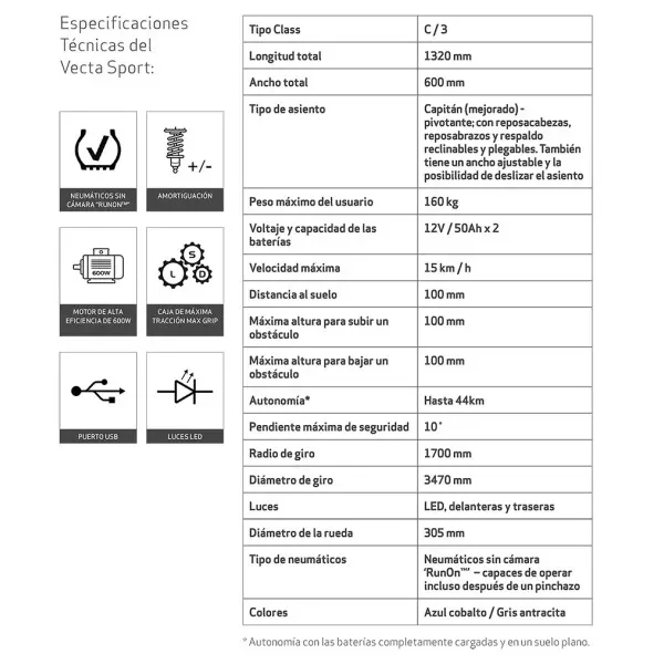 El Scooter VECTA SPORT altas prestaciones ofrece una autonomía impresionante de hasta 44 km por carga, asegurando que puedes llegar a donde necesitas sin preocupaciones. Además, su sistema de neumáticos ‘RunOn™’ te permite continuar tu viaje incluso después de un pinchazo, brindándote paz mental en cada salida.