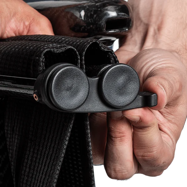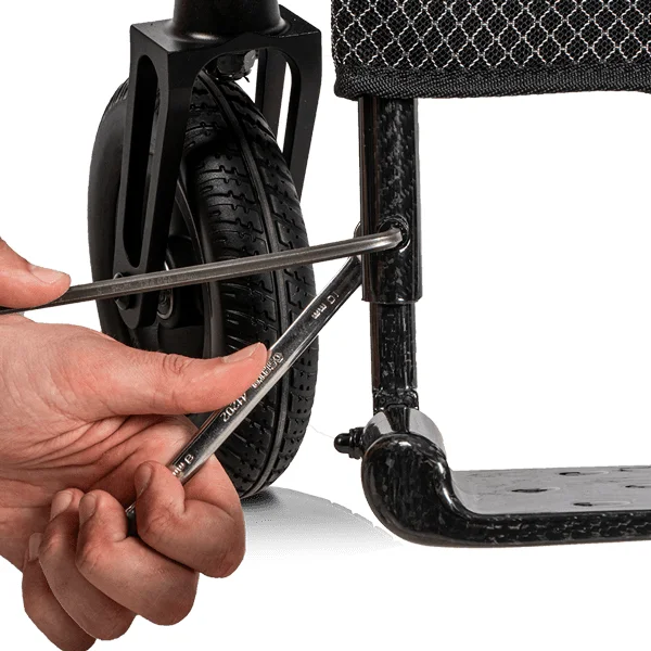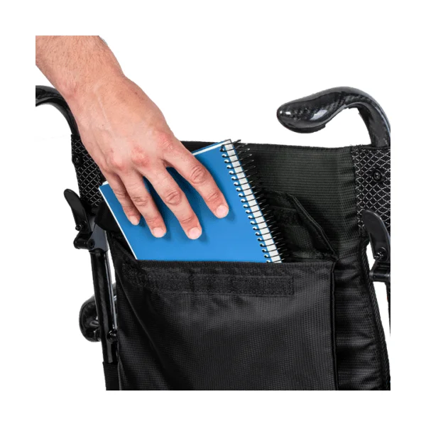 El plegado es rápido y no requiere herramientas. El respaldo partido se abate y los reposapiés se pliegan individualmente, reduciendo la silla a 28 cm de ancho por 91 cm de profundidad. Un gancho de seguridad integrado mantiene la silla cerrada durante el transporte. Estas dimensiones permiten guardarla en el maletero de la mayoría de turismos del mercado.